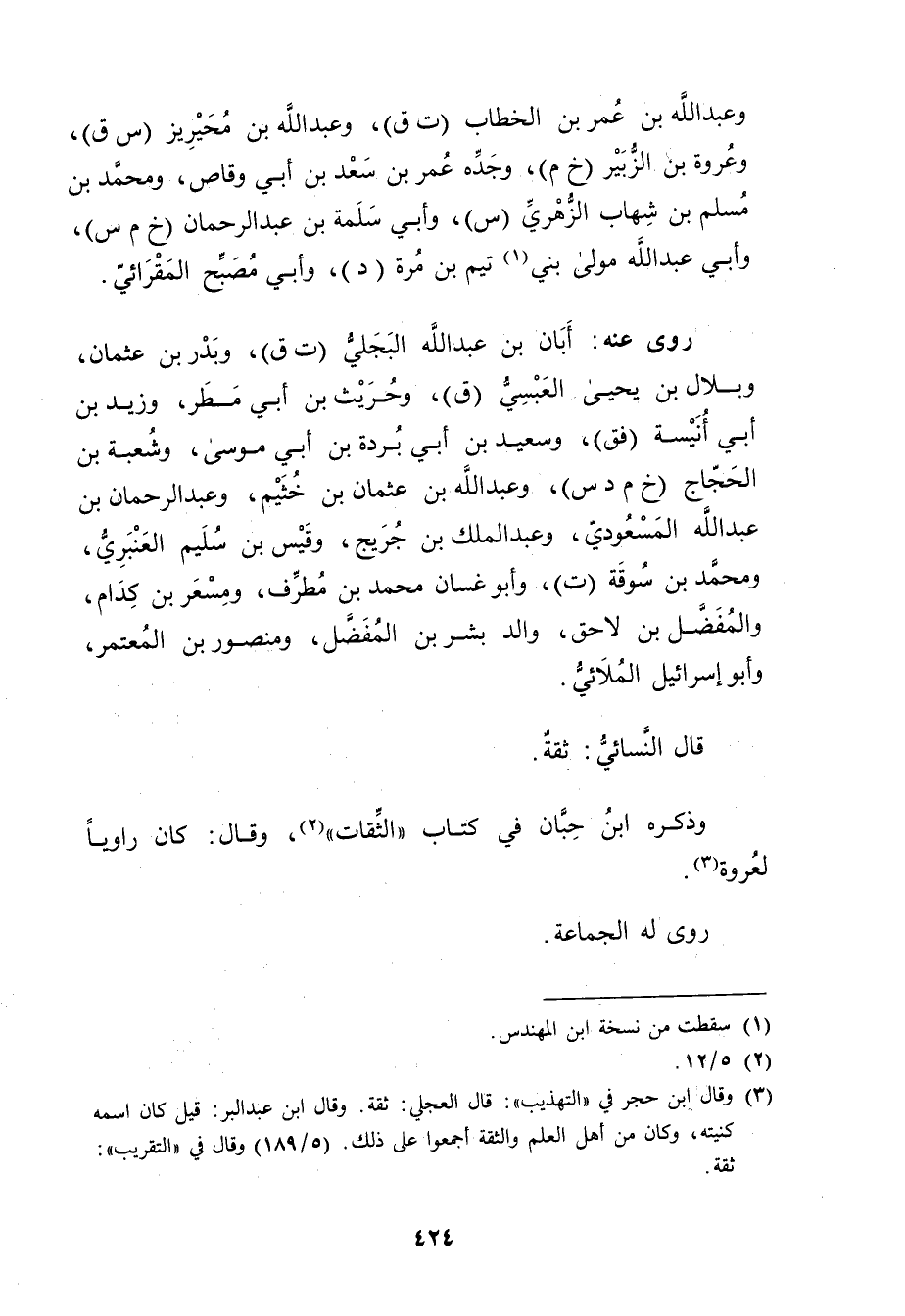 وذكره ابنُ حِبَّان في كتاب "الثقات" (2) ، وَقَال: كَانَ راويا لعروة (3) .