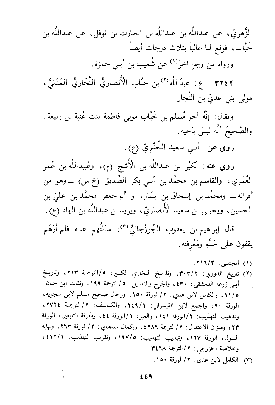 3242 - ع: عَبد اللَّهِ بن خباب الأَنْصارِيّ النجاري المدني (2) ، مولى بَنِي عدي بْن النجار.