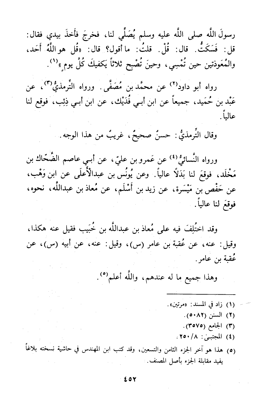 ورواه النَّسَائي (4) عَنْ عَمْرو بْن عَلِيٍّ، عَن أبي عاصم الضحاك بْن مَخْلَدٍ، فَوَقَعَ لَنَا بَدَلا عَالِيًا. وعن يونس بن عبد الاعلى عن ابن وهب، عَنْ حفص بْن ميسرة، عَنْ زَيْد بْن أسلم، عَنْ معاذ بْن عَبد اللَّهِ، نحوه، فوقع لنا عاليا.