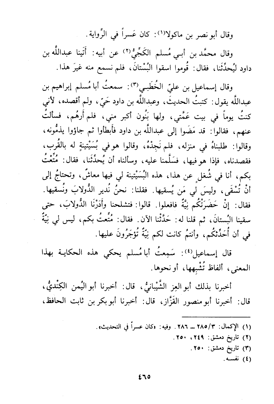 قال إِسْمَاعِيل (4) : سمعت أبا مُسْلِم يحكي هذه الحكاية بِهَذَا المعنى، ألفاظ تشبهها، أَوْ نحوها.
