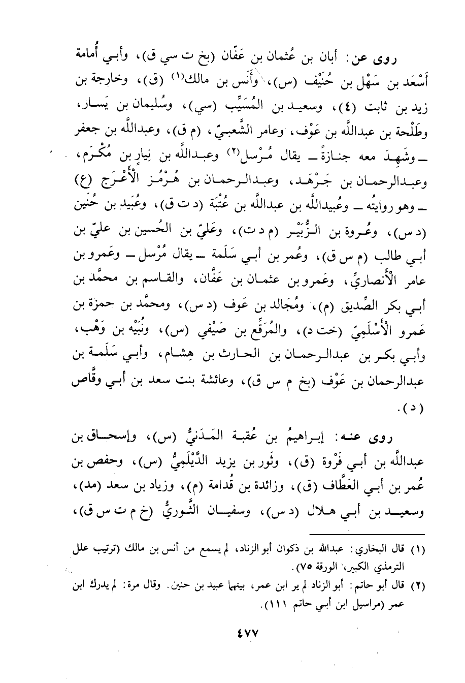 (1) قال البخاري: عَبد الله بن ذكوان أبي الزناد، لم يسمع من أنس بن مالك (ترتيب علل التِّرْمِذِيّ الكبير، الورقة 75) .