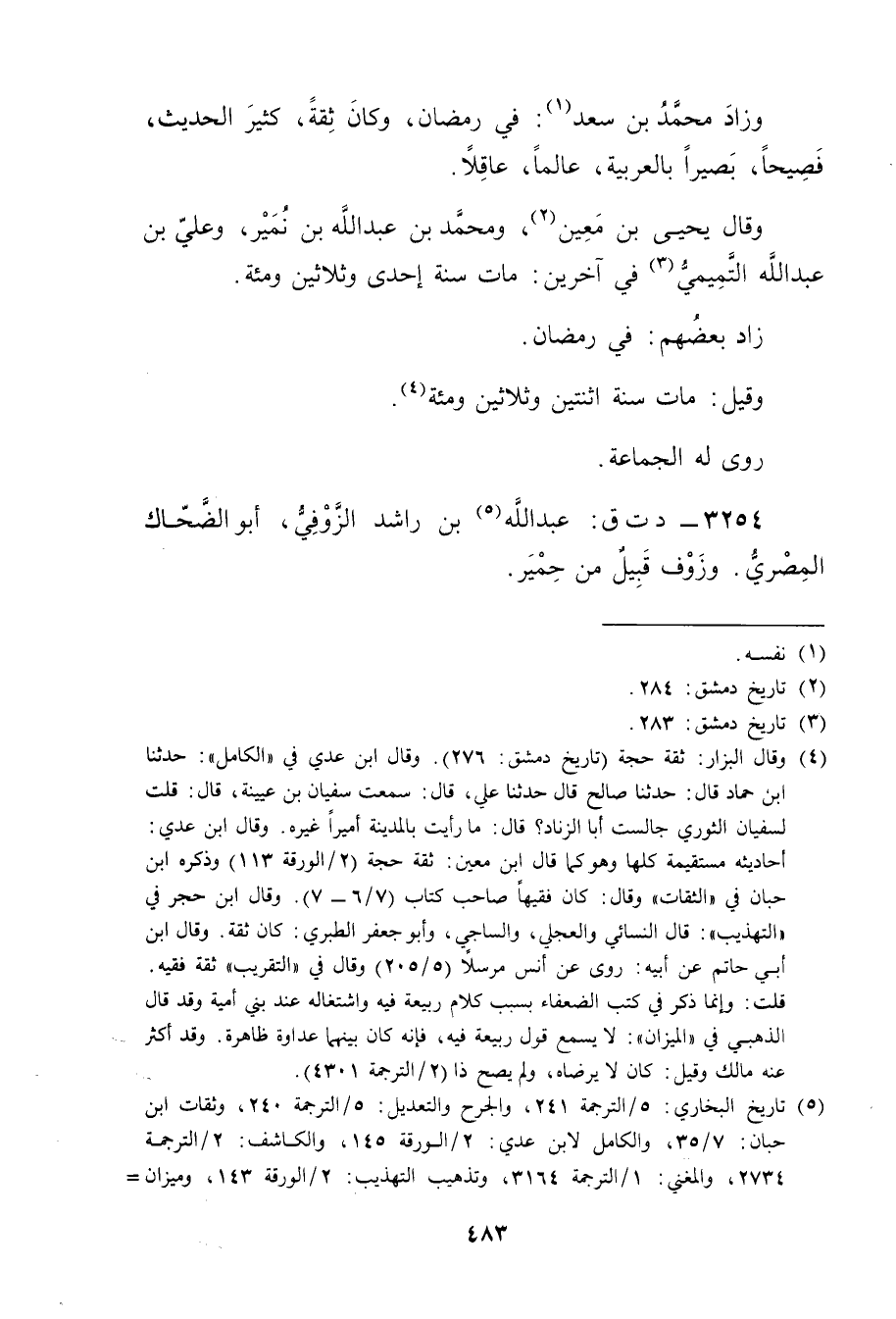 (5) تاريخ البخاري: 5 / الترجمة 241، والجرح والتعديل: 5 / الترجمة 240، وثقات ابن حبان: 7 / 35، والكامل لابن عدي: 2 / الورقة 145، والكاشف: 2 / الترجمة 2734، والمغني: 1 / الترجمة 3164، وتذهيب التهذيب: 2 / الورقة 143، وميزان =