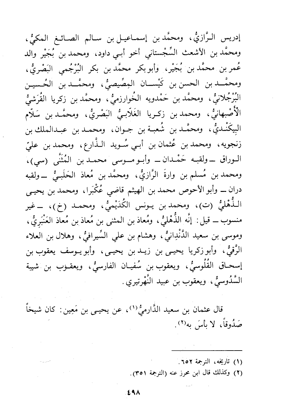 إدريس الرازي، ومحمد بْن إِسْمَاعِيل بْن سالم الصائغ الْمَكِّي، ومُحَمَّد بْن الأشعث السجستاني أَخُو أَبِي دَاوُد، ومُحَمَّد بْن بجير والد عُمَر بْن مُحَمَّد بْن بجير، وأَبُو بَكْر مُحَمَّد بْن بكر البرجمي البَصْرِيّ، ومُحَمَّد بْن الْحَسَن بْن كيسان المصيصي، ومُحَمَّد بْن الْحُسَيْن البرجلاني، ومُحَمَّد بْن حمدويه الخوارزمي، ومُحَمَّد بْن زَكَرِيَّا الْقُرَشِي الأصبهاني، ومُحَمَّد بْن زَكَرِيَّا الغلابي البَصْرِيّ، ومُحَمَّد بْن سلام البيكندي، ومحمد بْن شعبة بْن جوان، ومحمد بْن عَبد المَلِك بْن زَنْجَوَيْه، ومحمد بْن عثمان بْن أَبي سويد الذارع، ومُحَمَّد بْن عَلِي الوراق - ولقبه حمدان - وأَبُو موسى مُحَمَّد بْن المثنى (سي) ، ومحمد بْن مسلم بْن وارة الرازي، ومُحَمَّد بْن معاذ الحلبي - ولقبه دران - وأَبُو الأَحوص مُحَمَّد بْن الهيثم قاضي عكبرا، ومحمد بْن يَحْيَى الذهلي (ت) ، ومُحَمَّد بْن يُونُس الكديمي، ومُحَمَّد (خ) ، غَيْر منسوب - قيل: إنه الذهلي، ومعاذ بْن المثنى بْن معاذ بْن معاذ العنبري، وموسى بْن سَعِيد الدنداني، وهِشَام بْن عَلِي السيرافي، وهلال بْن العلاء الرَّقِّيّ، وأَبُو زَكَرِيَّا يَحْيَى بْن زَيْد بْن يَحْيَى، وأَبُو يُوسُف يعقوب بْن إِسْحَاقَ القلوسى، ويعقوب بْن سفيان الفارسي، ويعقوب بْن شَيْبَة السدوسي، ويعقوب بْن عُبَيد النهرتيري.