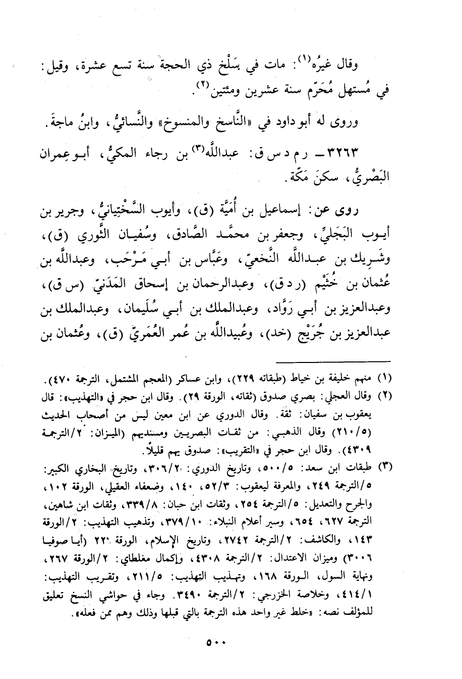 3263 - رم د س ق: عَبد اللَّهِ بن رجاء المكي (3) ، أبوعِمْران البَصْرِيّ، سكن مَكَّة.