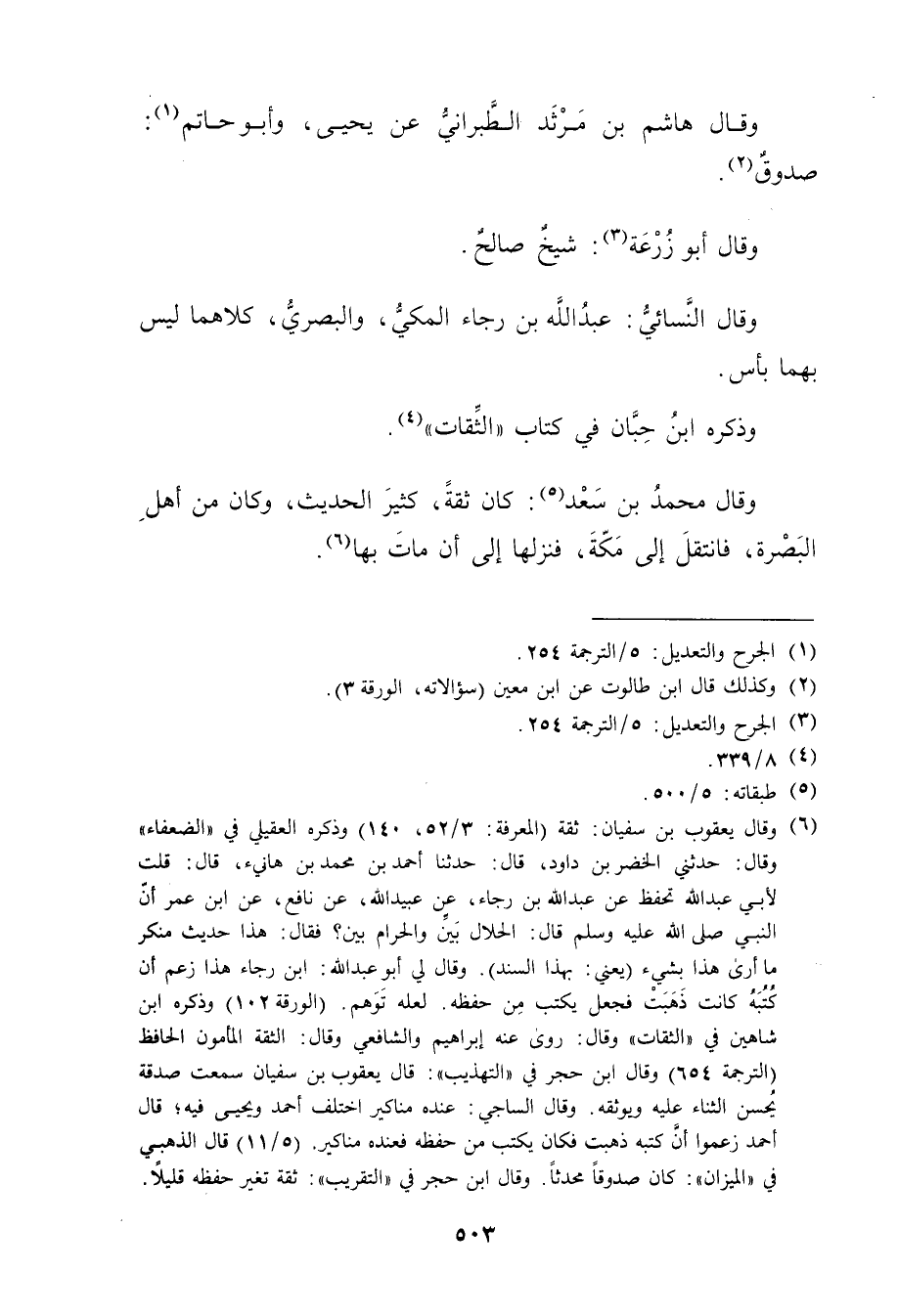 (1) الجرح والتعديل: 5 / الترجمة 254.