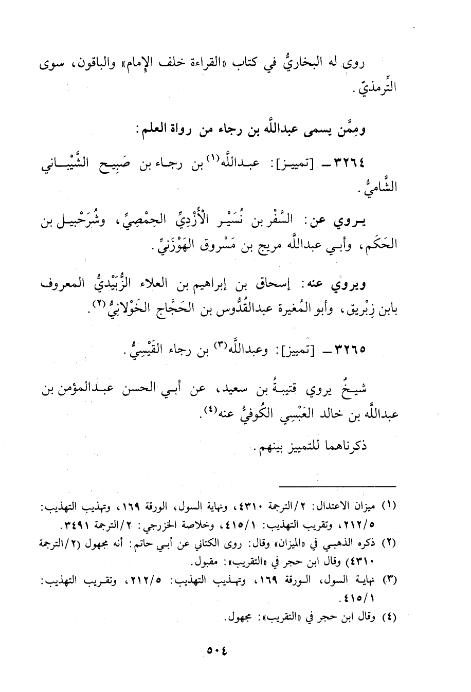 3265 - تمييز: وعبد اللَّه بن رجاء القيسي (3) .