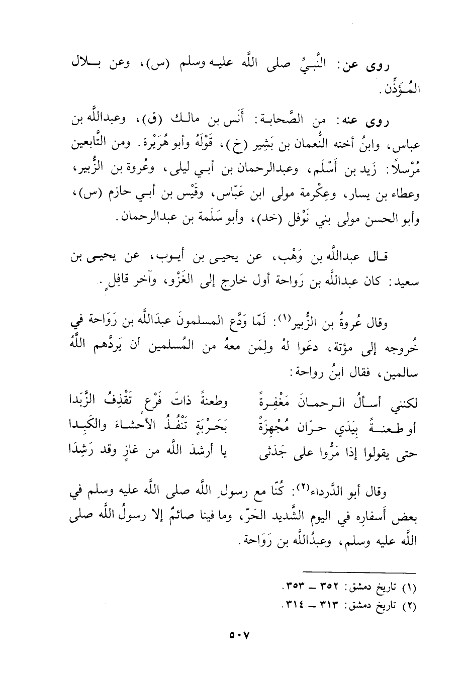 وَقَال عروة بْن الزُّبَيْر (1) : لما ودع المسلمون عَبد اللَّهِ بْن رواحة فِي