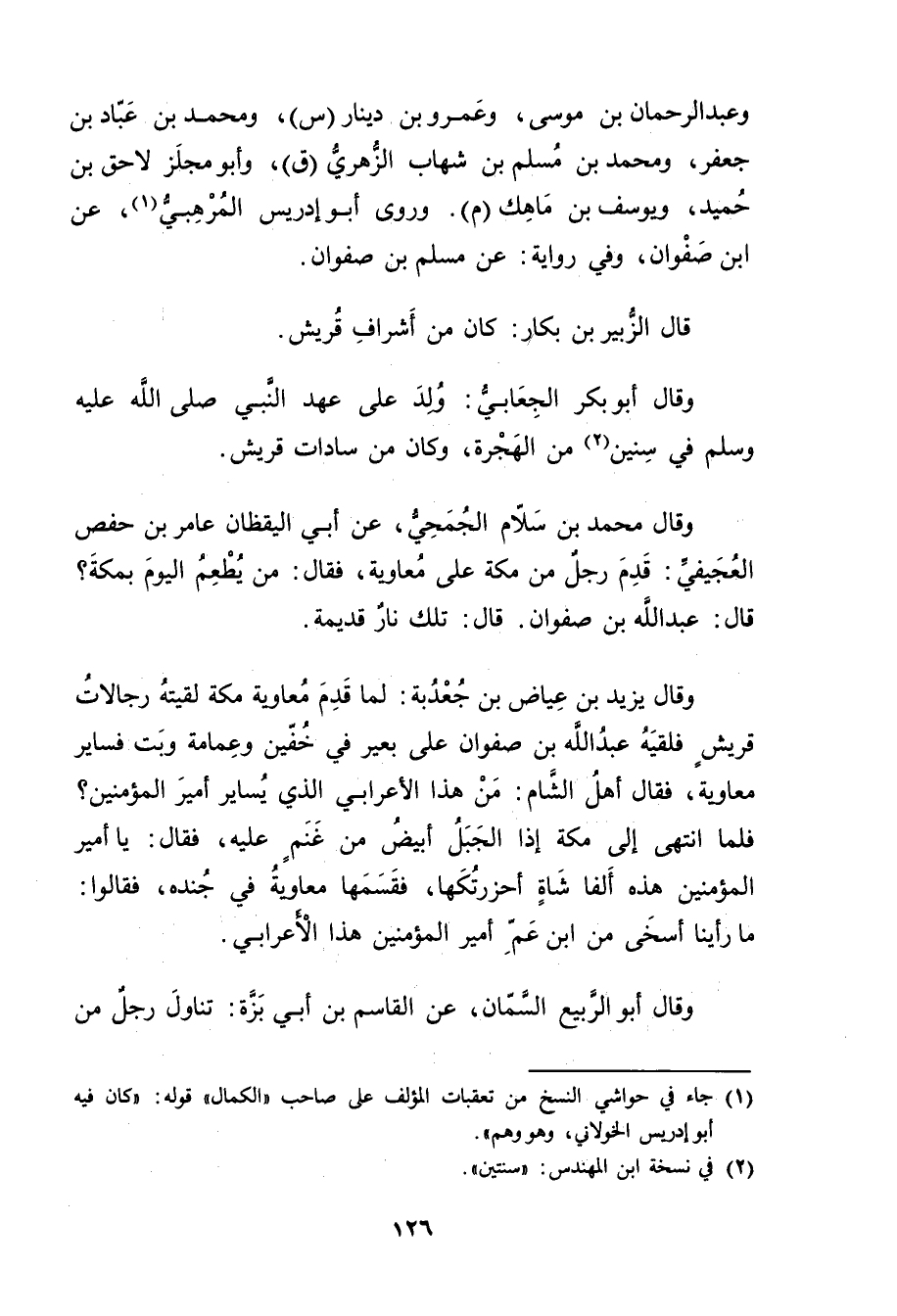 وَقَال أَبُو بكر الجعابي: ولد على عهد النَّبِيّ صَلَّى اللَّهُ عَلَيْهِ وسَلَّمَ فِي سنين (2) من الهجرة، وكان من سادات قريش.
