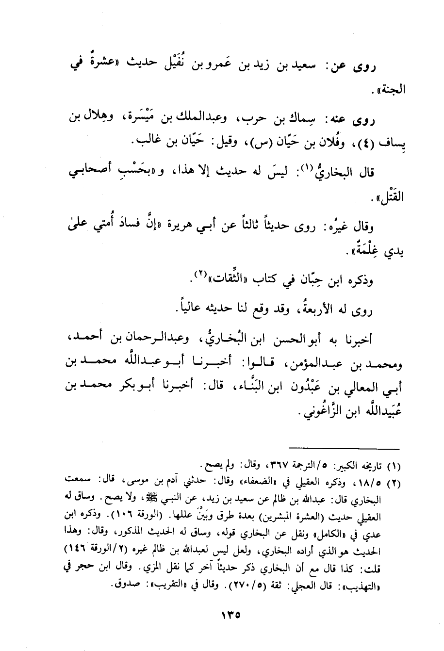 (1) تاريخه الكبير: 5 / الترجمة 367، وَقَال: ولم يصح.