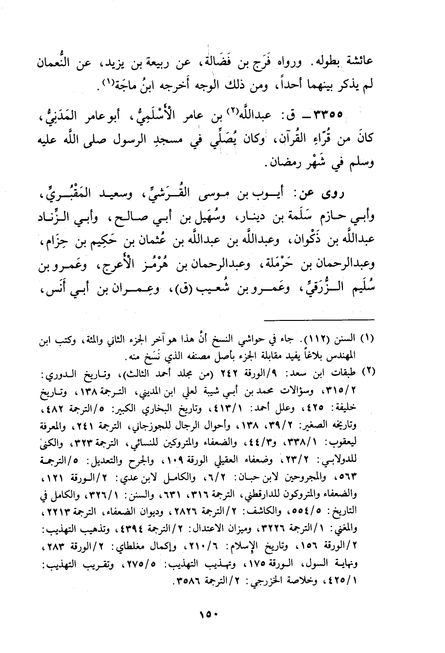 3355 - ق: عَبد اللَّهِ بن عامر الأَسلميّ (2) ، أَبُو عامر المدني، كان من قرأ القرآن، وكان يصلي فِي مسجد الرسول صَلَّى اللَّهُ عَلَيْهِ وسَلَّمَ فِي شهر رمضان.