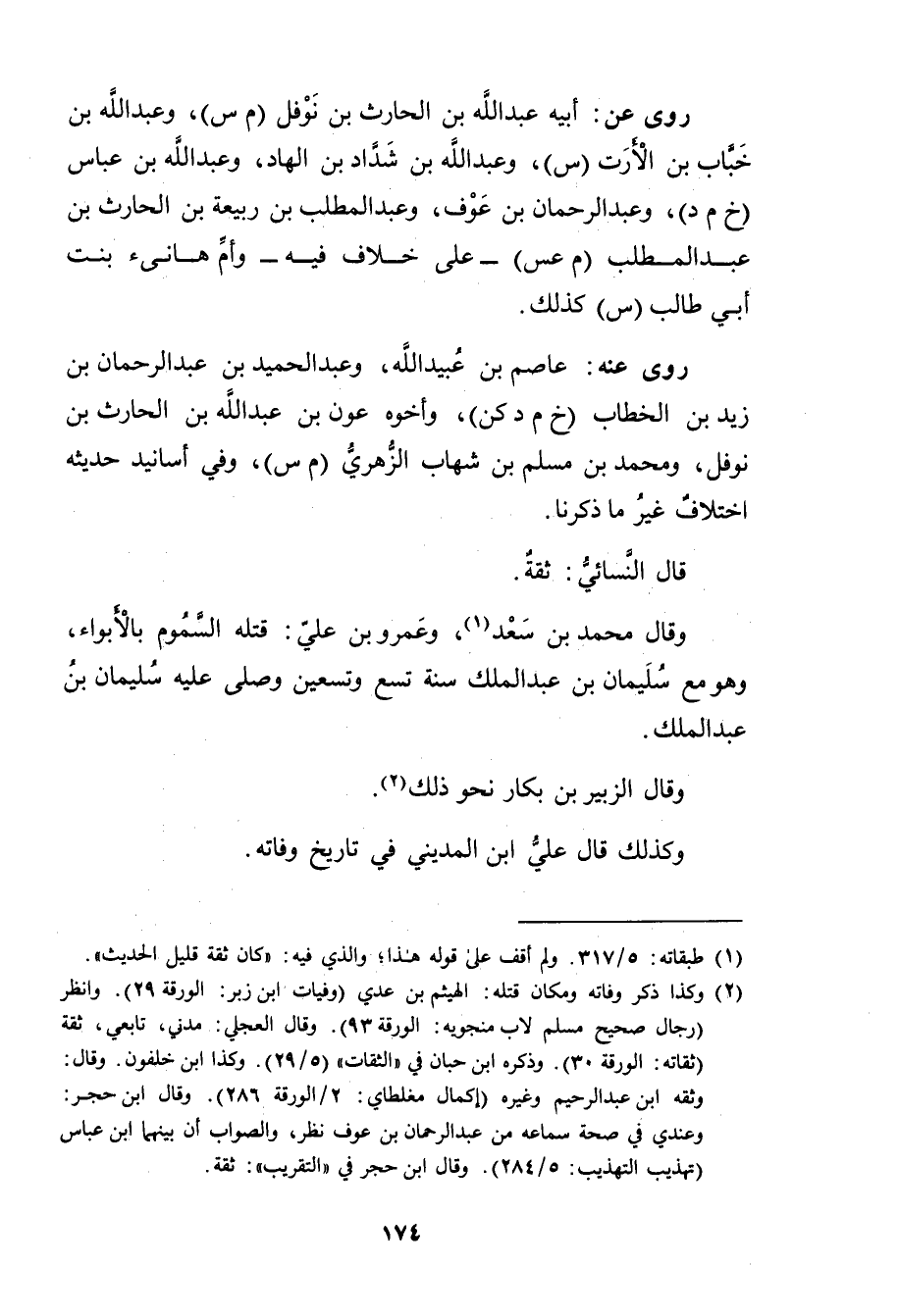 (2) وكذا ذكر وفاته ومكان قتله: الهيثم بن عدي (وفيات ابن زبر: الورقة 29) . وانظر (رجال صحيح مسلم لاب منجويه: الورقة 93) . وَقَال العجلي: مدني، تابعي، ثقة (ثقاته: الورقة 30) ، وذَكَره ابنُ حِبَّان في "الثقات" (5 / 29) . وكذا ابن خلفون. وَقَال: وثقه ابن عَبد الرحيم وغيره (إكمال مغلطاي: 2 / الورقة 286) . وَقَال ابن حجر: وعندي في صحة سماعه من عَبْد الرَّحْمَنِ بْن عوف نظر، والصواب أن بينهما ابن عباس (تهذيب التهذيب: 5 / 284) . وَقَال ابن حجر في "التقريب": ثقة.