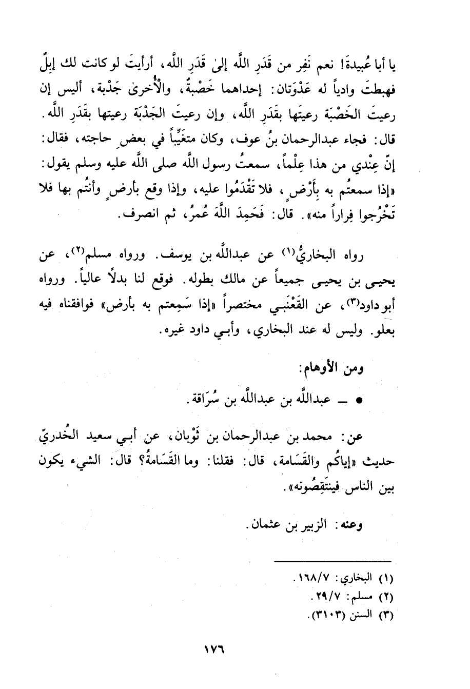 رَوَاهُ البخاري (1) عَن عَبد الله بْن يوسف. ورَوَاهُ مُسْلِمُ (2) ، عَنْ يَحْيَى بْنِ يَحْيَى جميعا عن مالك بِطُولِهِ. فَوَقَعَ لَنَا بَدَلا عَالِيًا. ورَوَاهُ أَبُو دَاوُدَ (3) ، عن القعنبي مختصرا"إِذَا سمعتم بِهِ بأرض "فوافقناه فيه بعلو. وليس لَهُ عند البخاري، وأبي داود غيره.