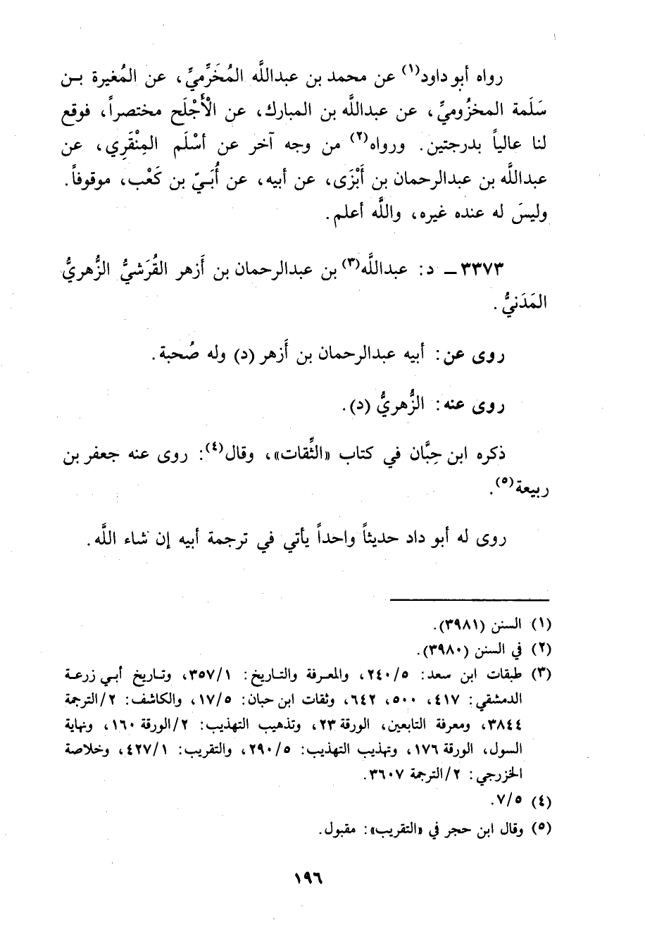 3373 - د: عَبد اللَّهِ بْن عَبْد الرَّحْمَنِ بن أزهر القرشي الزُّهْرِيّ المدني (3) .