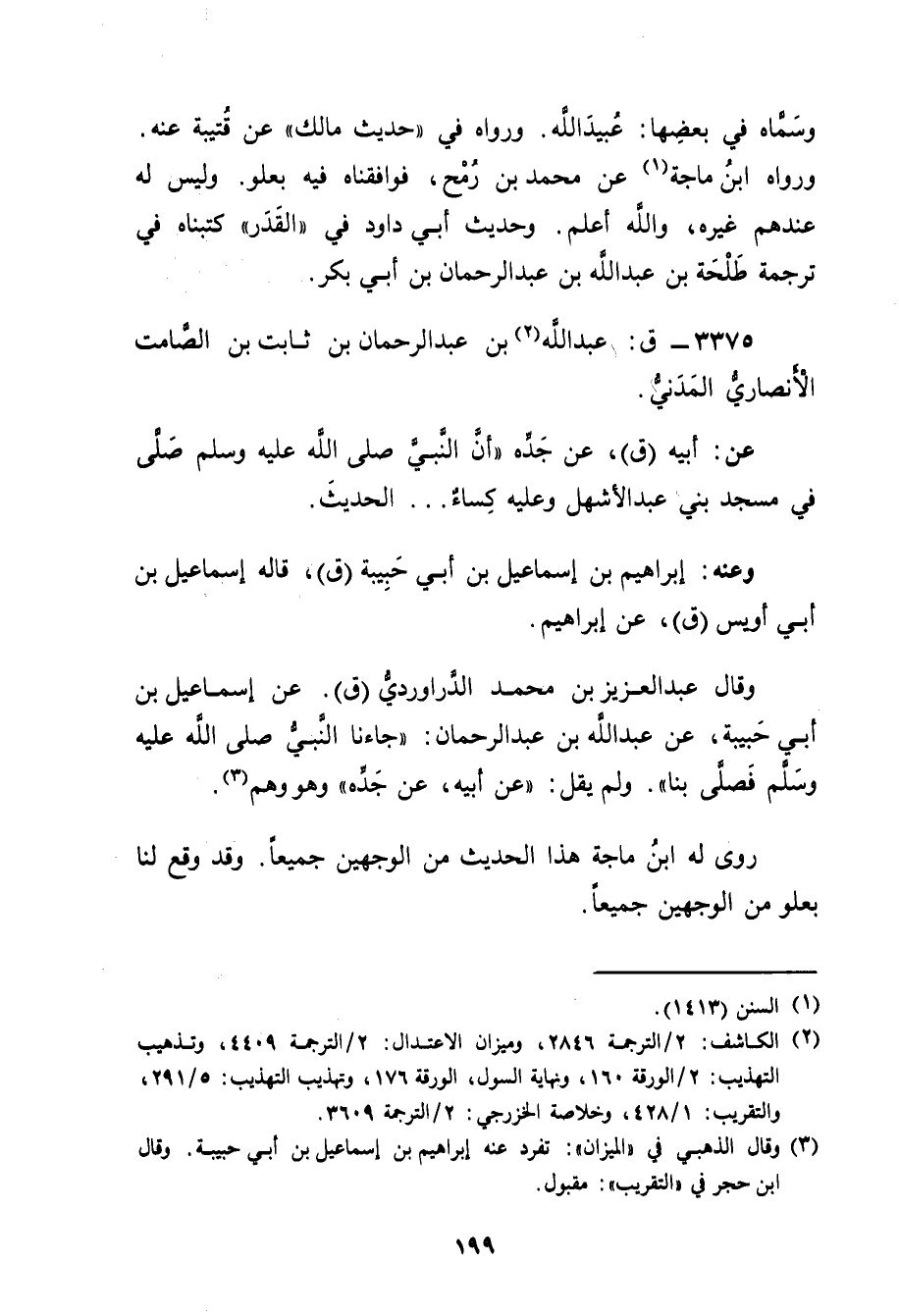 3375 - ق: عَبد اللَّهِ بن عَبْدِ الرحمن بْن ثابت بْن الصامت الأَنْصارِيّ المدني (2) .