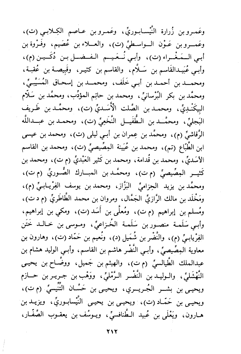 وعَمْرو بْن زرارة النيسابوري، وعَمْرو بن عاصم الكِلابي (ت) ، وعَمْرو بن عون الواسطي (ت) ، والعلاء بن عصيم، وفروة بن أَبي المغراء (ت) ، وأبي نعيم الفضل بن دكين (م) ، وأبي عُبَيد القاسم بْن سلام، والقاسم بْن كثير، وقبيصة بن عقبة، ومحمد بْن أَحْمَد بْن أَبي خلف، ومحمد بْن إسحاق المُسَيَّبي، ومحمد بْن بكر البرساني، ومحمد بْن حاتم المؤدب، ومحمد بن سلام البيكندي، ومحمد بن الصلت الأسدي (ت) ، ومحمد بن طريف البجلي، ومحمد بن الطفيل النخعي (ت) ، ومحمد بْن عَبد اللَّهِ الرقاشي (م) ، ومحمد بن عِمْران بن أَبي ليلى (ت) ، ومحمد بْن عيسى ابن الطباع (تم) ، ومحمد بن عُيَيْنَة المصيصي (ت) ، ومحمد بن القاسم الأسدي، ومحمد بن قُدَامَةَ، ومحمد بن كثير العبدي (م ت) ، ومحمد بن كثير المصيصي (م ت) ، ومحمد بن المبارك الصوري (م ت) ، ومحمد بن يَزِيدَ الحزامي البزاز، ومحمد بن يُوسُفَ الفريابي (م) ، ومخلد بن مالك الرازي الجمال، ومروان بن محمد الطاطري (م د ت) ، ومسلم بن إِبْرَاهِيمَ (م ت) ، ومعلى بن أسد (ت) ، ومكي بن إِبْرَاهِيمَ، وأبي سلمة منصور بن سَلَمَةَ الخزاعي، وموسى بن خالد ختن الفريابي (م) ، والنضر بن شميل (د) ، ونعيم بن حماد (ت) ، وهارون بن معاوية المصيصي، وأبي النَّضْر هاشم بْن الْقَاسِم، وأبي الوليد هشام بْن عَبد المَلِك الطيالسي (م ت) ، والهيثم بن جميل، ووضاح بن يَحْيَى النهشلي، والوليد بن النضر الرملي، ووهب بْن جرير بْن حازم ويحيى بن بشر الجريري، ويحيى بن حسان التنيسي (م ت) ، ويحيى بن حماد (ت) ، ويحيى بْن يَحْيَى النيسابوري، ويزيد بْن هارون، ويَعْلَى بْن عُبَيد الطنافسي، ويوسف بن يَعْقُوبَ الصفار،