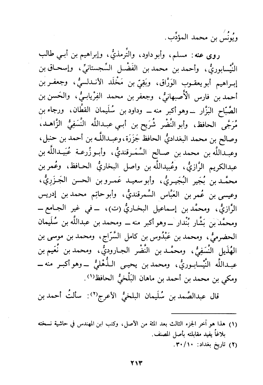 قال عبد الصمد بن سُلَيْمان البلخي الأعرج (2) : سألت أحمد بْن
