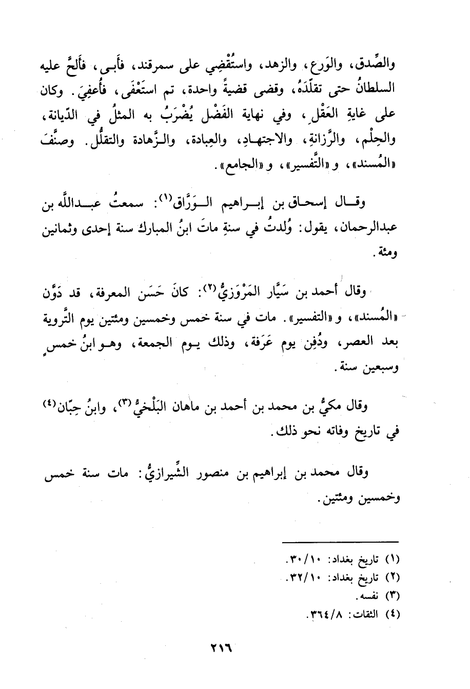 وَقَال مكي بن مُحَمَّدِ بْنِ أَحْمَدَ بن ماهان البلخي (3) ، وابن حبان (4) فِي تاريخ وفاته نحو ذَلِكَ.