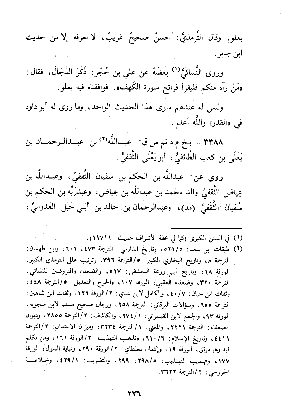 3388 - بخ م د تم س ق: عَبد اللَّهِ بْن عَبْد الرَّحْمَنِ بن يَعْلَى بن كعب الطائفي (2) ، أَبُو يَعْلَى الثقفي.