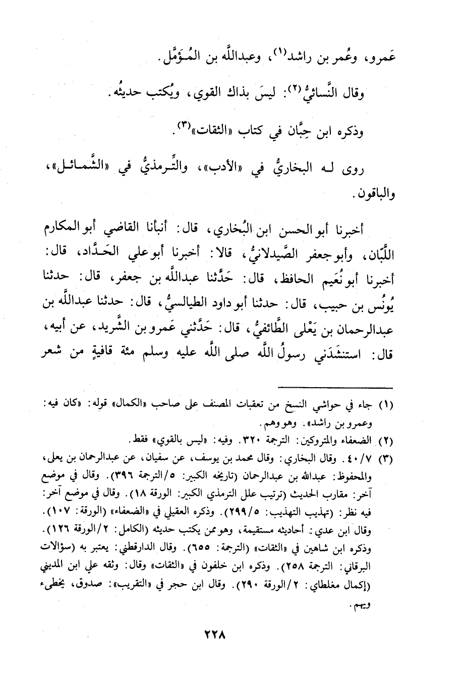 (1) جاء في حواشي النسخ من تعقبات المصنف على صاحب "الكمال" قوله: كان فيه: وعَمْرو بن راشد". وهو وهم.