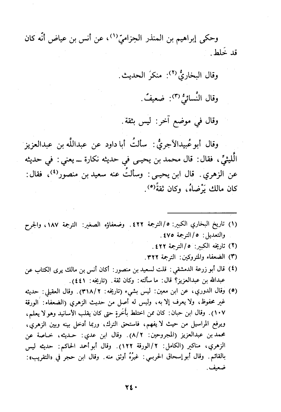 (1) تاريخ البخاري الكبير: 5 / الترجمة 422. وضعفاؤه الصغير: الترجمة 187، والجرح والتعديل: 5 / الترجمة 475.