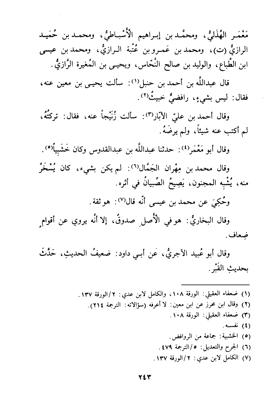 (1) ضعفاء العقيلي: الورقة 108، والكامل لابن عدي: 2 / الورقة 137.