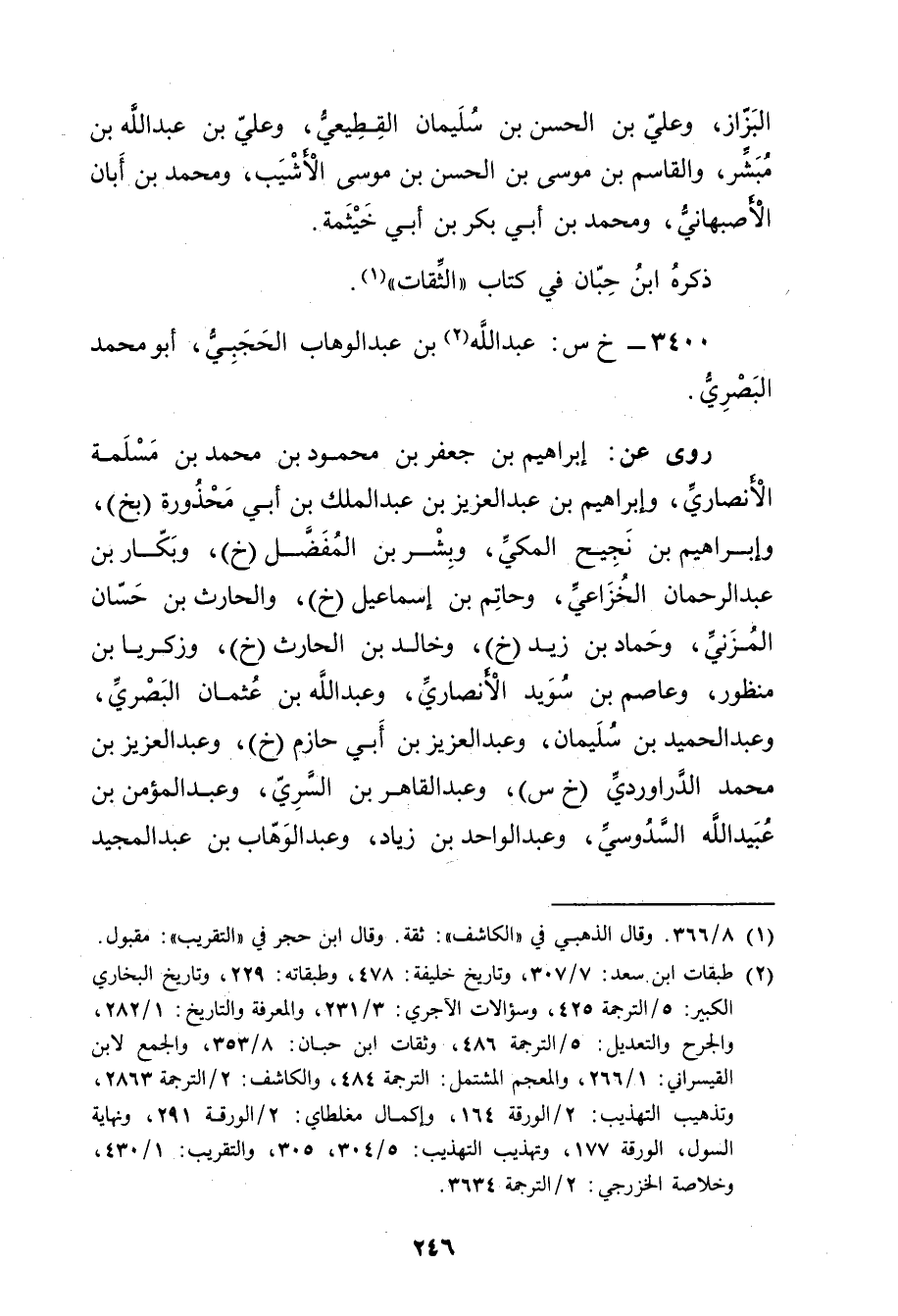 3400 - خ س: عَبد اللَّهِ بْن عَبْد الْوَهَّابِ الحجبي (2) ، أَبُو محمد البَصْرِيّ.