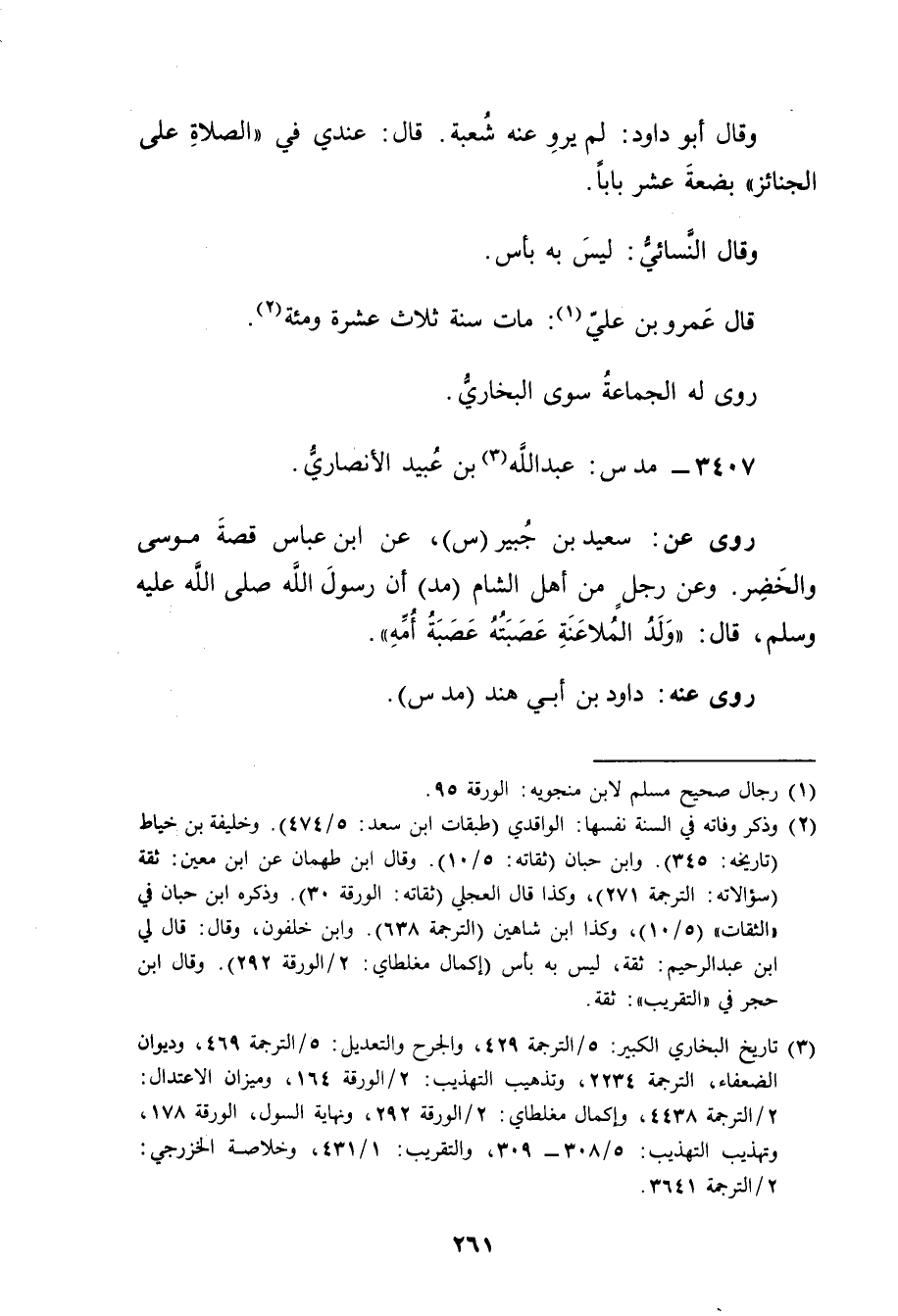 (3) تاريخ البخاري الكبير: 5 / الترجمة 429، والجرح والتعديل: 5 / الترجمة 469، وديوان الضعفاء: الترجمة 2234، وتذهيب التهذيب: 2 / الورقة 164، وميزان الاعتدال: 2 / الترجمة 4438، وإكمال مغلطاي: 2 / الورقة 292، ونهاية السول، الورقة 178، وتهذيب التهذيب: 5 / 308 - 309، والتقريب: 1 / 431، وخلاصة الخزرجي: 2 / الترجمة 3641.