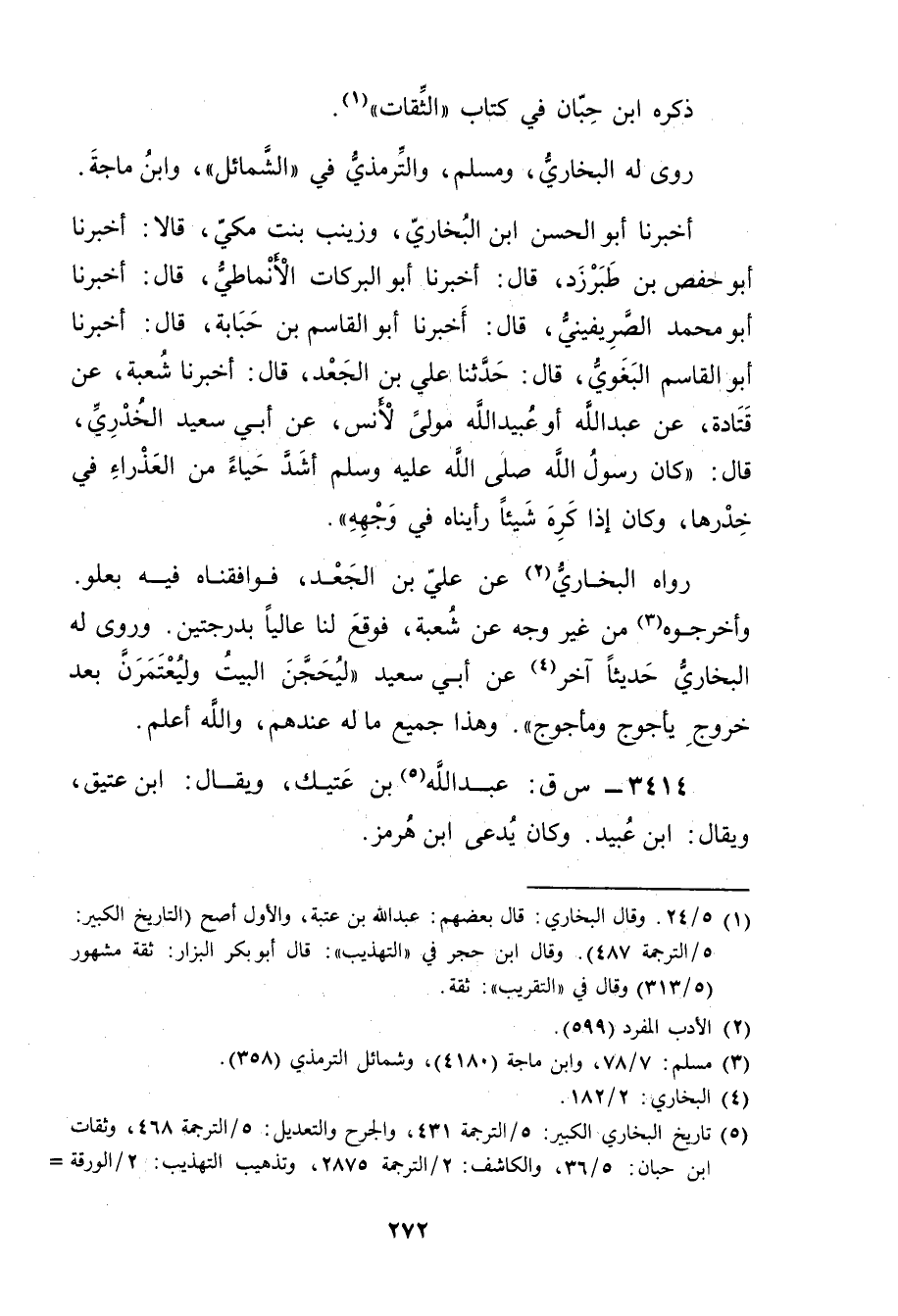 3414 - س ق: عَبد اللَّهِ بن عتيك (5) ، ويُقال: ابن عتيق، ويُقال: ابن عُبَيد. وكان يدعى ابن هرمز.