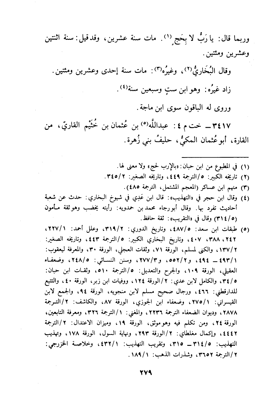 3417 - خت م 4: عَبد اللَّهِ بْن عثمان بْن خثيم القاري (5) ، من القارة، أَبُو عثمان المكي، حليف بني زهرة.