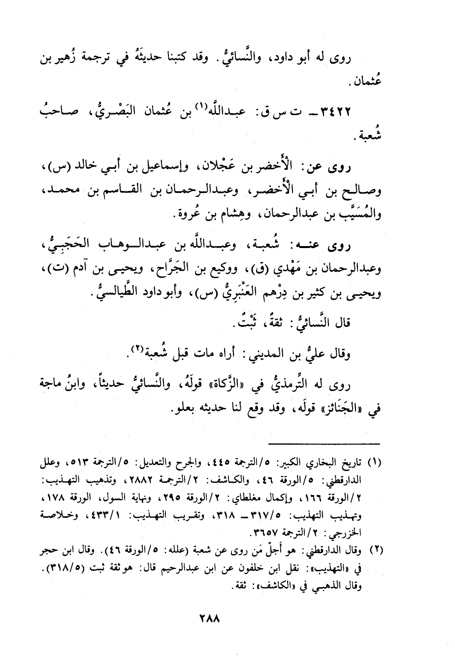 3422 - ت س ق: عَبد اللَّهِ بن عثمان البَصْرِيّ (1) ، صاحب شعبة.