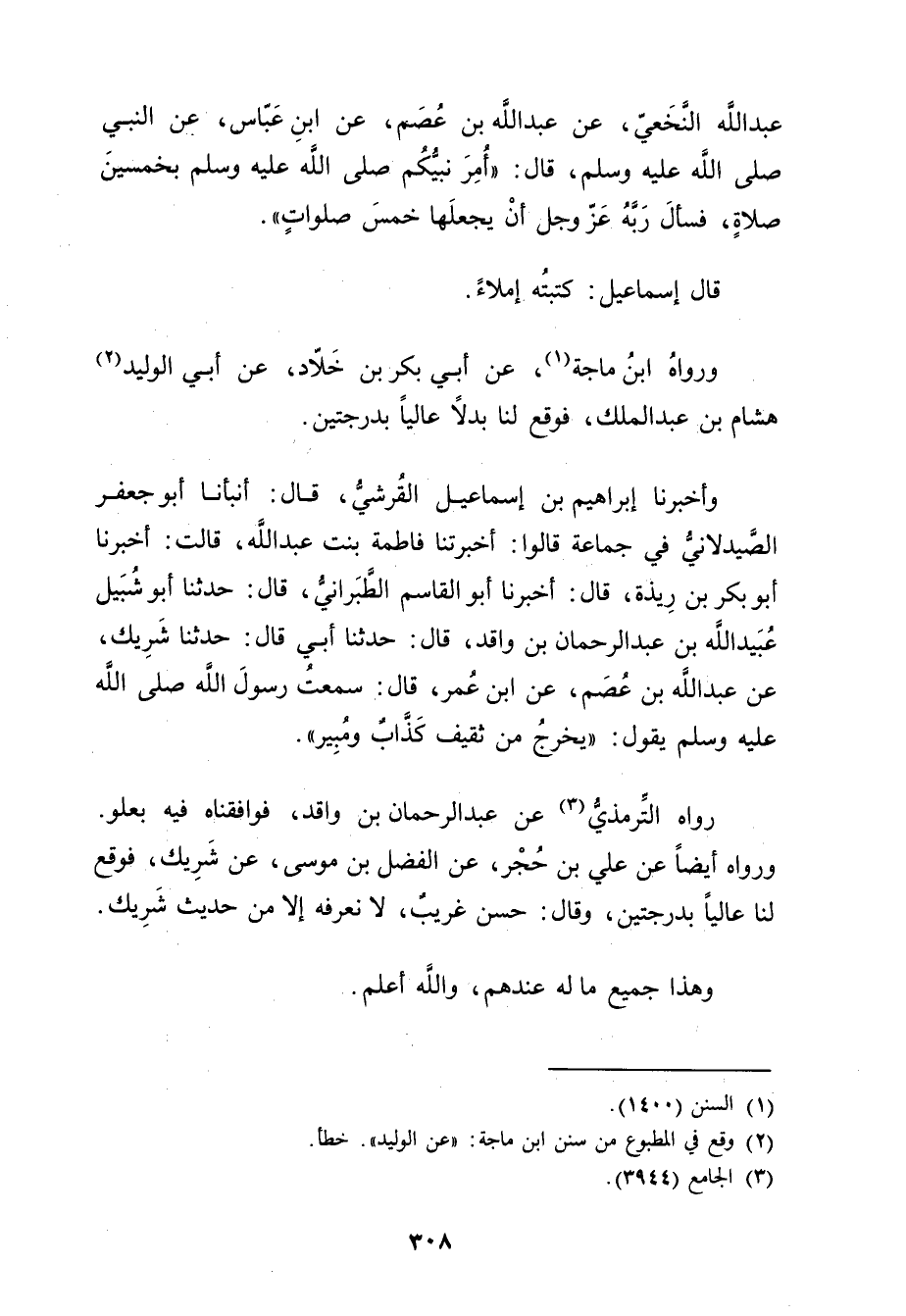 (2) وقع في المطبوع من سنن ابن ماجة: عن الوليد". خطأ.