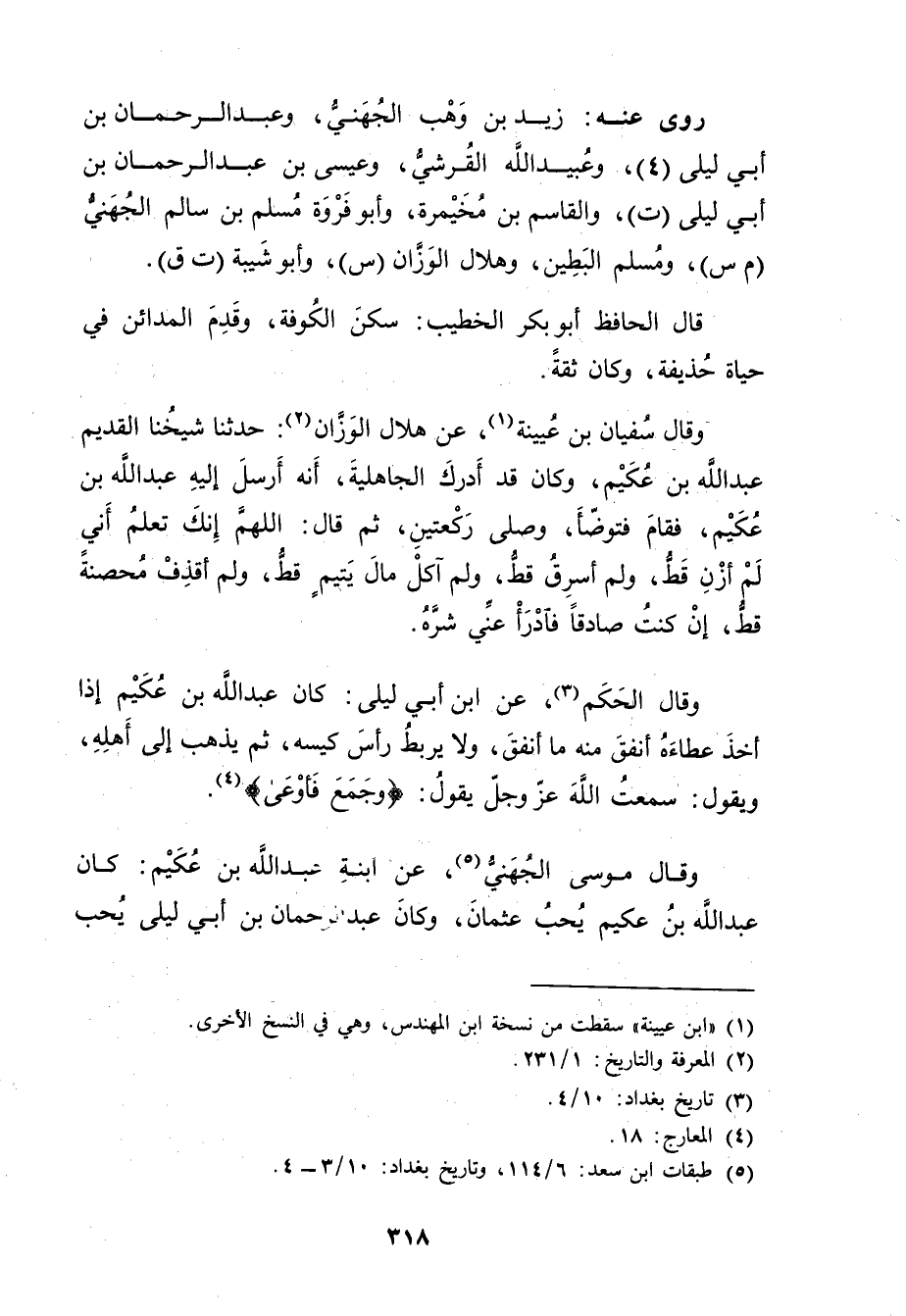 (5) طبقات ابن سعد: 6 / 114، وتاريخ بغداد: 10 / 3 - 4.