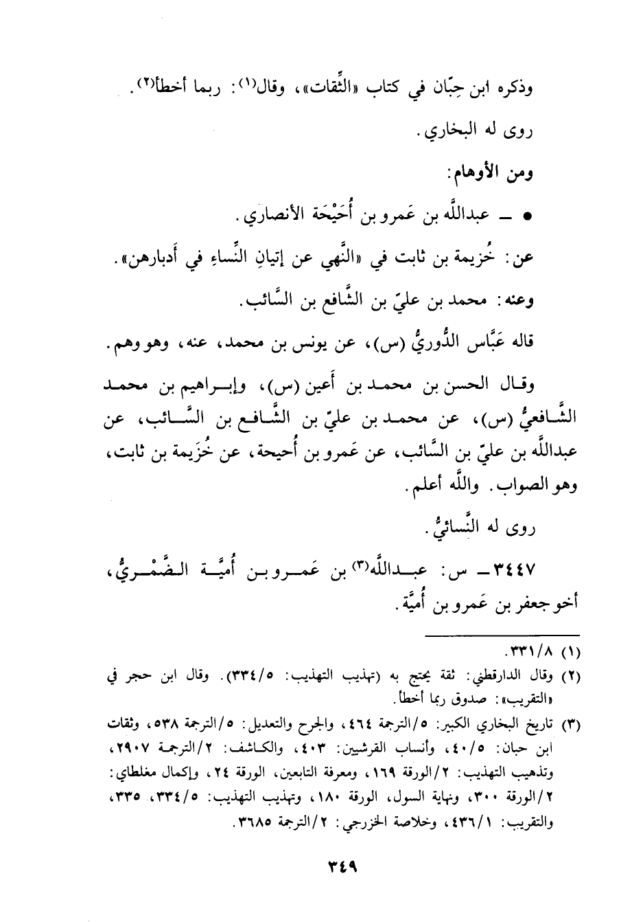 3447 - س: عَبد اللَّهِ بن عَمْرو بن أمية الضمري (3) ، أخو جعفر بن عَمْرو بن أمية.