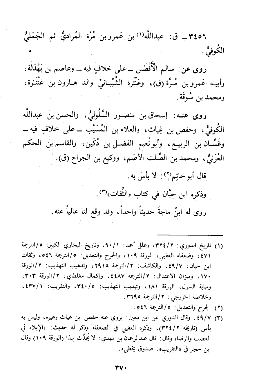 3456 - ق: عَبد اللَّهِ بن عَمْرو بن مُرَّةَ المرادي ثم الجملي الكوفي (1) .