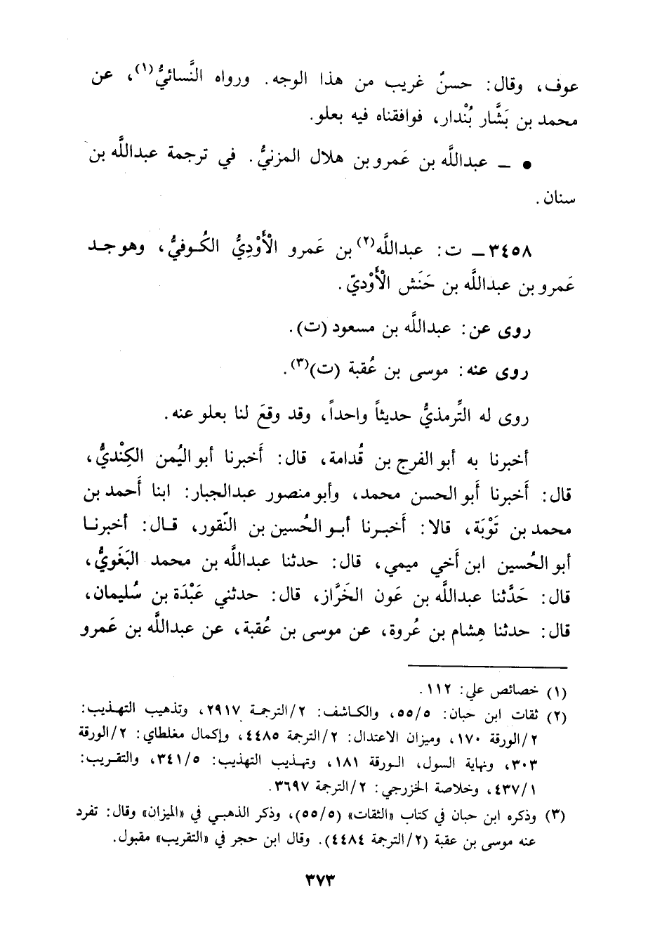 3458 - ت: عَبد اللَّهِ بن عَمْرو الأَودِيّ الكوفي (2) ، وهو جد عَمْرو بن عَبد اللَّهِ بْنِ حنش الأَودِيّ.