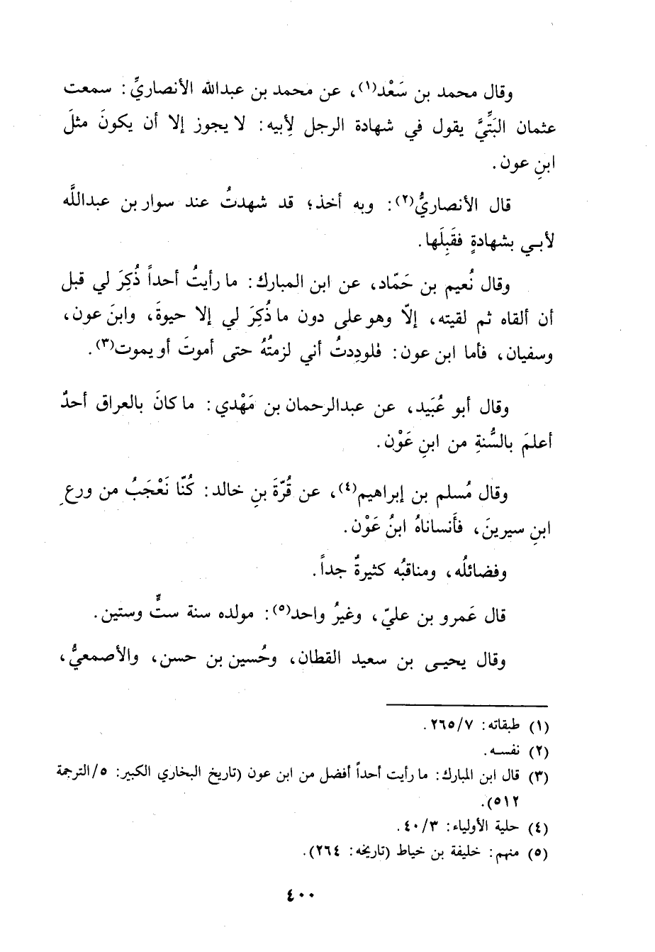(3) قال ابْنِ المبارك: ما رأيت أحدا أفضل من ابن عون (تاريخ البخاري الكبير: 5 / الترجمة 512) .