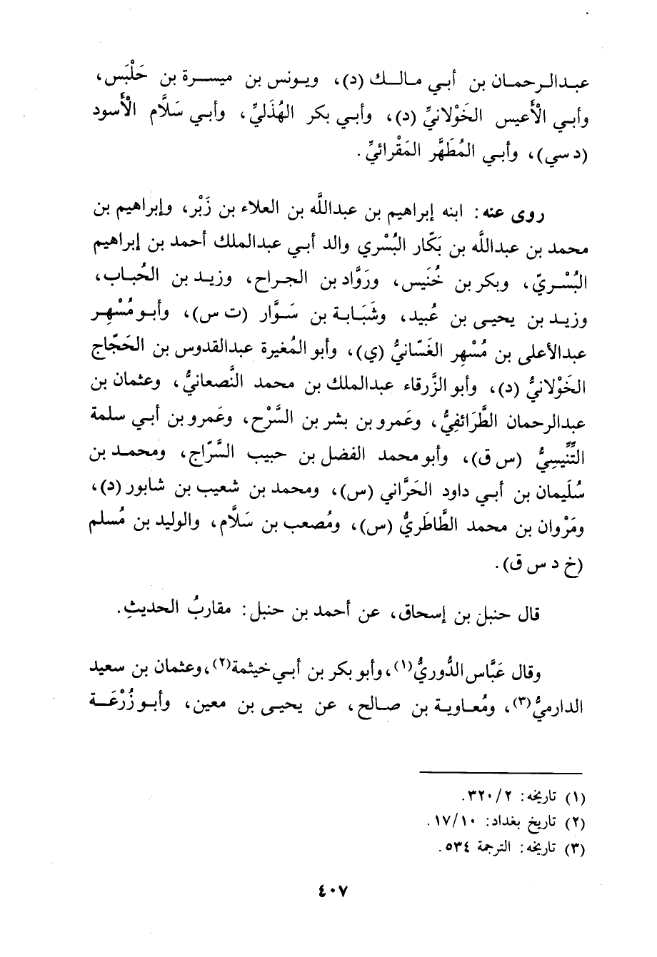 وَقَال عَباس الدُّورِيُّ (1) ، وأبو بكر بْن أَبي خيثمة (2) ، وعثمان بن سَعِيد الدارمي (3) ، ومعاوية بْن صَالِح، عَنْ يحيى بْن مَعِين، وأبو زُرْعَة
