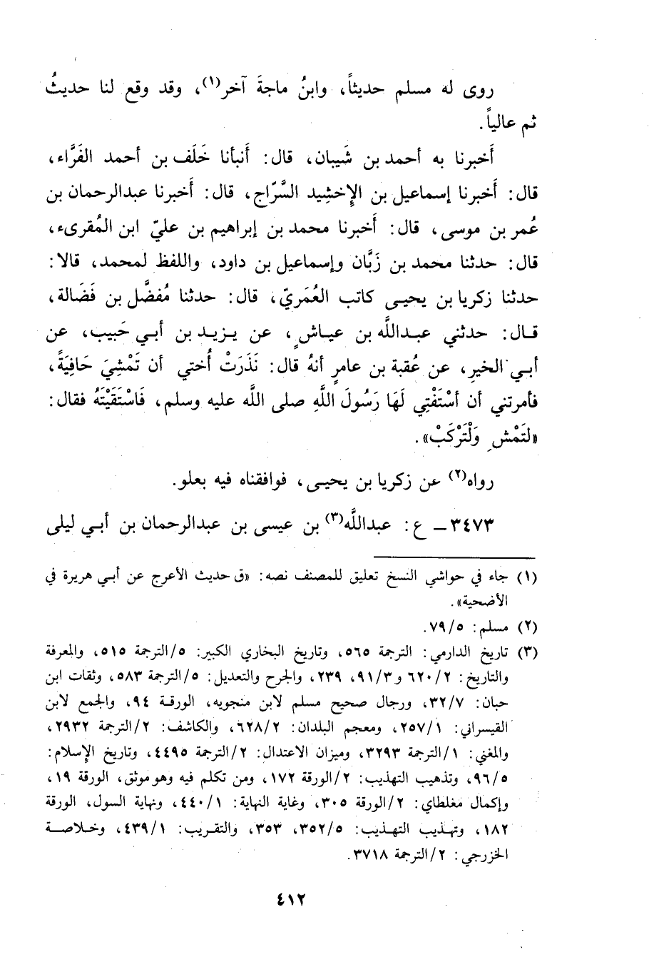 3473 - ع: عَبد اللَّهِ بن عِيسَى بْن عَبْد الرَّحْمَنِ بْن أَبي ليلى (3)