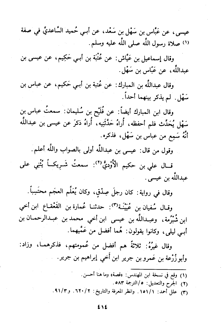 عِيسَى، عن عباس بن سهل بن سَعْدٍ، عَن أَبِي حميد الساعدي فِي صفة (1) صلاة رَسُول اللَّهِ صلى الله عليه وسلم.