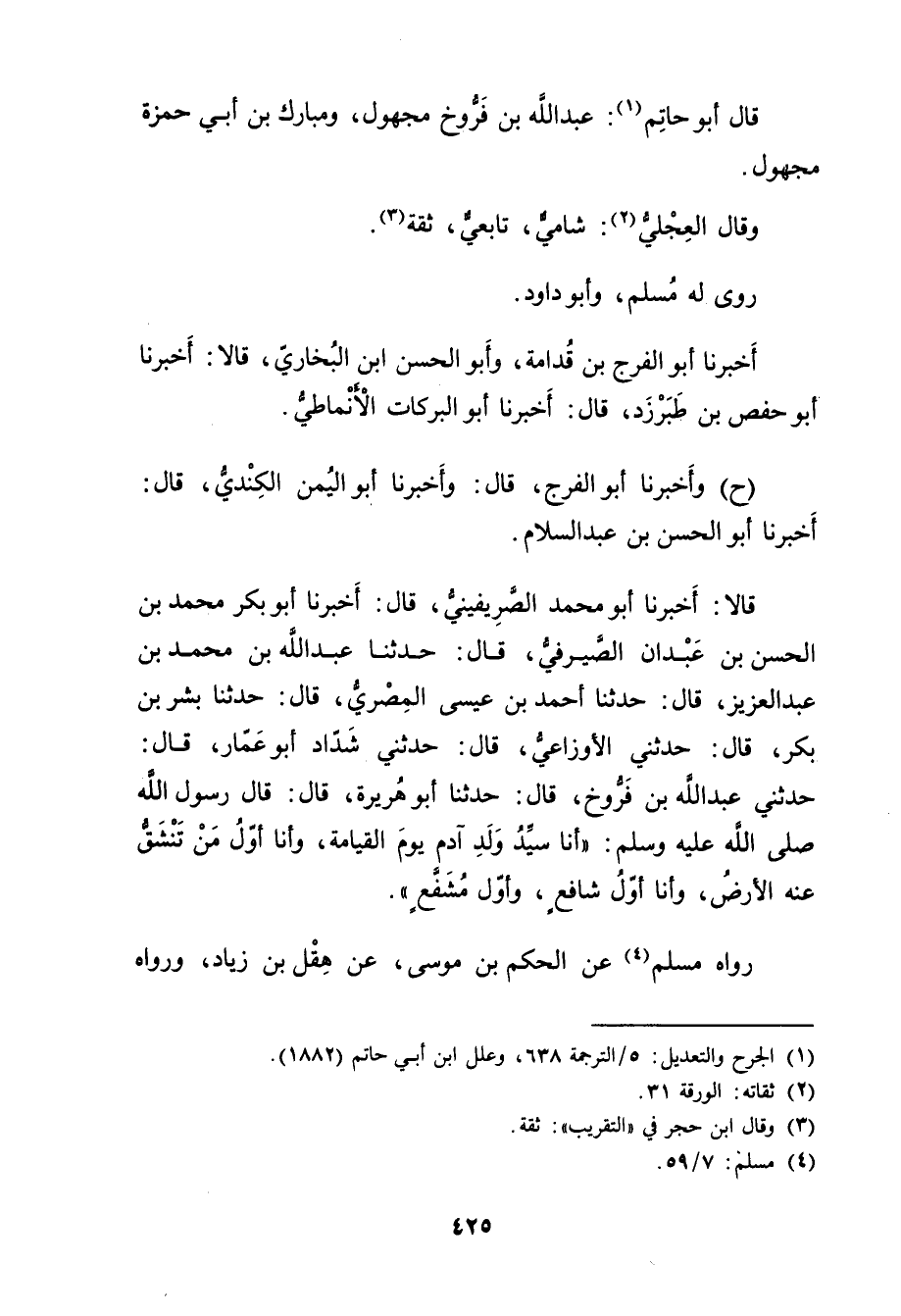 قال أَبُو حاتم (1) : عَبد اللَّهِ بن فروخ مجهول، ومبارك بن أَبي حمزة مجهول. وَقَال العجلي (2) : شامي، تابعي، ثقة (3) .