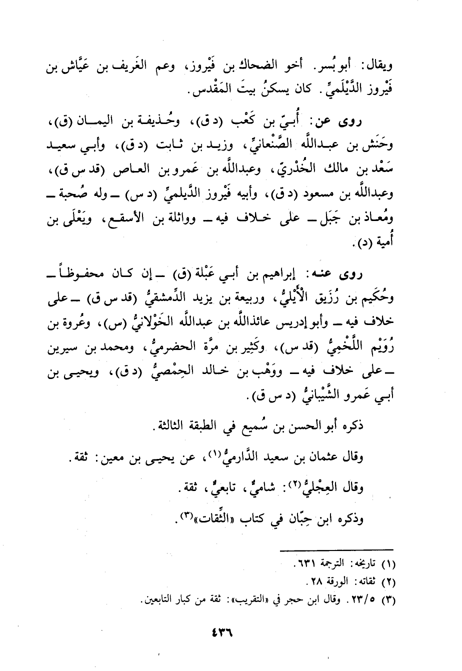 (3) 5 / 23. وَقَال ابن حجر في "التقريب": ثقة من كبار التابعين.