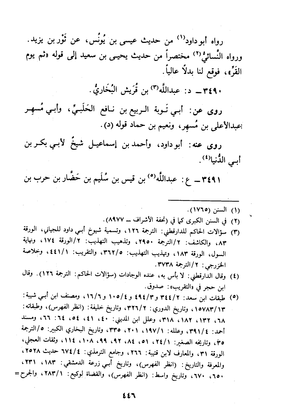 (3) سؤالات الحاكم للدارقطني: الترجمة 126، وتسمية شيوخ أبي داود للجياني، الورقة 83، والكاشف: 2 / الترجمة 2950، وتذهيب التهذيب: 2 / الورقة 174، ونهاية السول، الورقة 183، وتهذيب التهذيب: 5 / 362، والتقريب: 1 / 441، وخلاصة الخزرجي: 2 / الترجمة 3738.