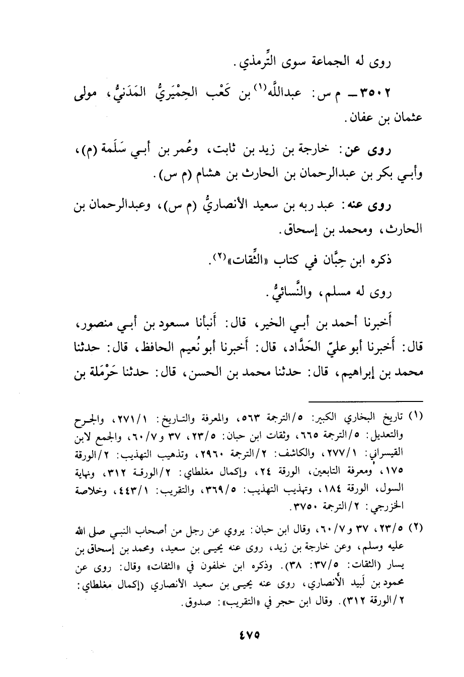 3502 - م س: عَبد اللَّهِ بْن كعب الحميري المدني (1) ، مولى عثمان بن عفان.
