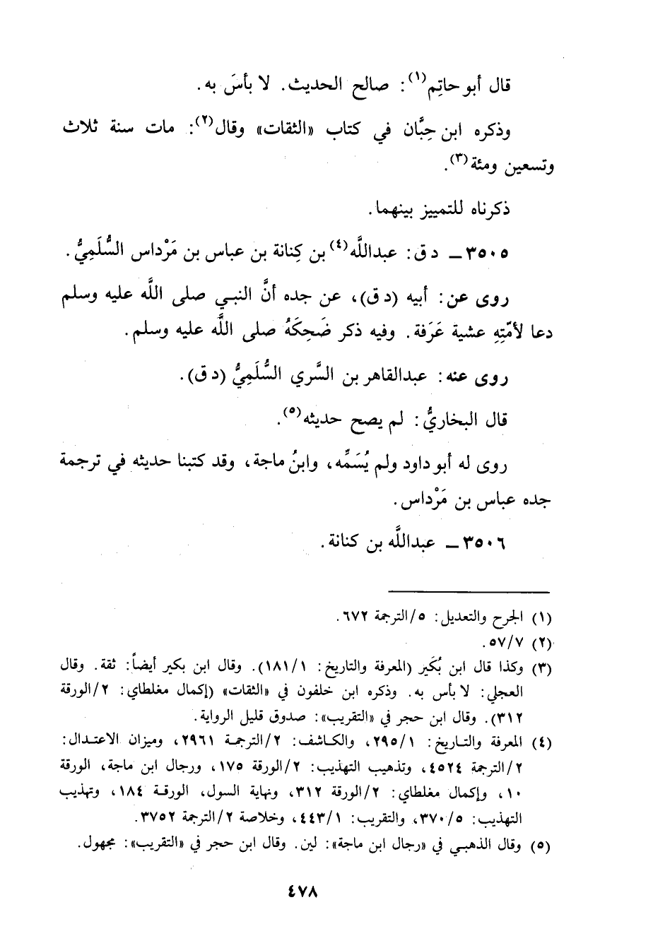 3505 - د ق: عَبد اللَّهِ بن كنانة بن عباس بن مرداس السلمي (4) .