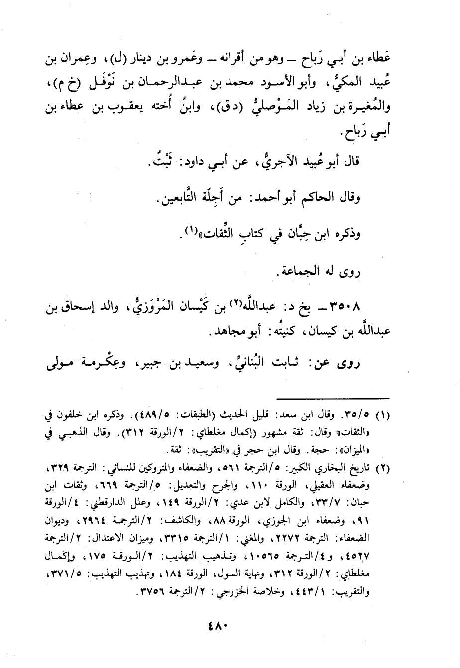 3508 - بخ د: عَبد اللَّهِ بن كَيْسَانَ المروزي (2) ، والد إسحاق بن عَبد اللَّهِ بْنِ كيسان، كنيته: أَبُو مجاهد.