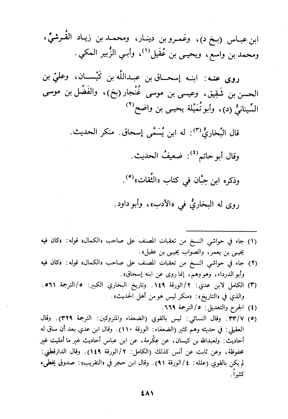 (3) الكامل لابن عدي: 2 / الورقة 149. وتاريخ البخاري الكبير: 5 / الترجمة 561. والذي في "التاريخ": منكر ليس هو من أهل الحديث.