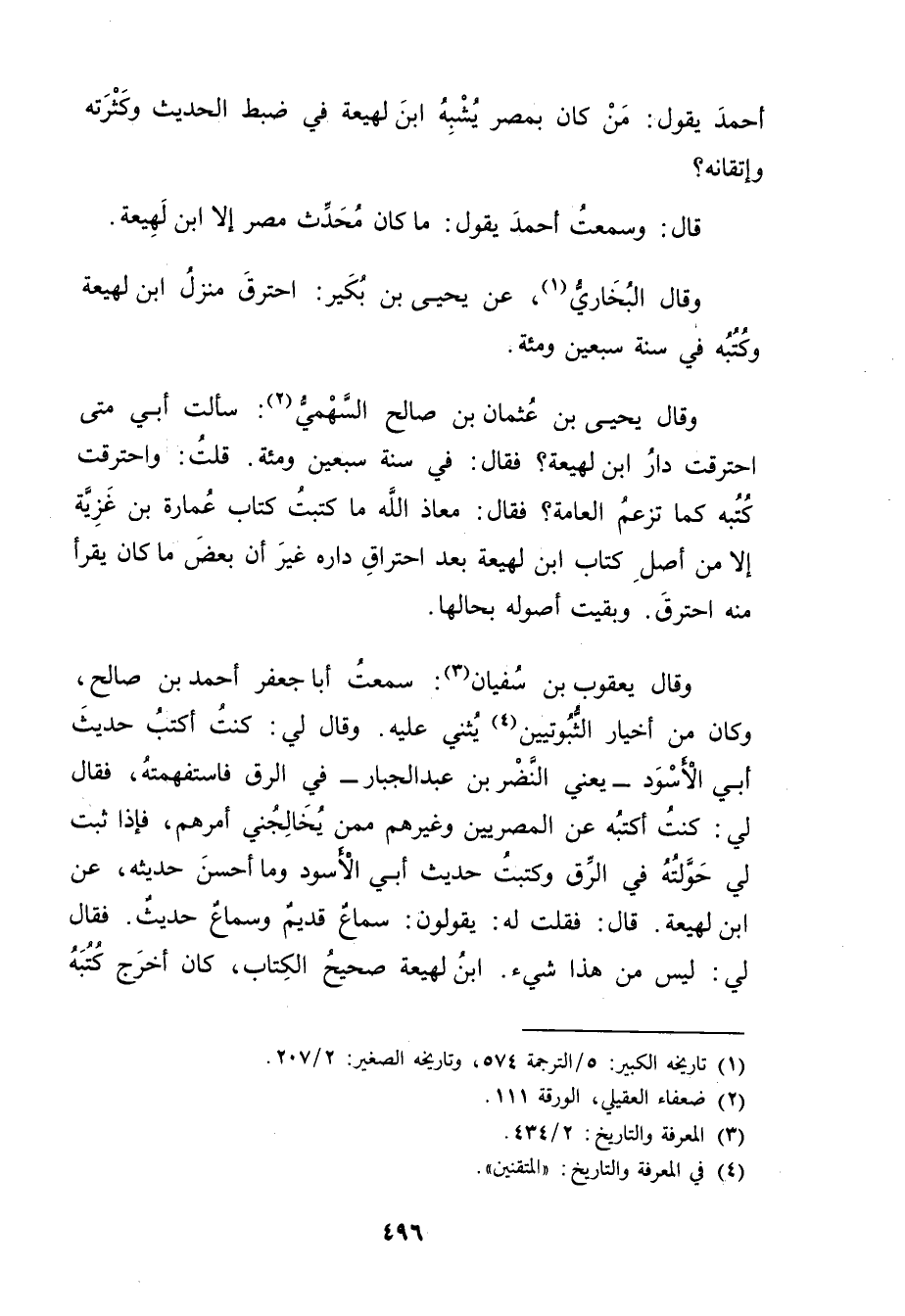 أحمد يقول: من كان بمصر يشبه ابن لَهِيعَة فِي ضبط الحديث وكثرته وإتقانه؟ قال: وسمعت أحمد يَقُولُ: ما كَانَ محدث مصر إلا ابن لَهِيعَة.