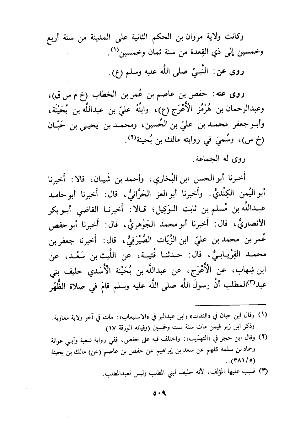 (2) وَقَال ابن حجر في "التهذيب": واختلف فيه على حفص، ففي رواية شعبة وأبي عوانة وحماد بن سلمة كلهم عن سهد بن إبراهيم عن حفص بن عاصم (عن) مالك بن بحينة (5 / 381) . ضبب عليها المؤلف، لانه حليف لبني المطلب وليس لعبد المطلب.