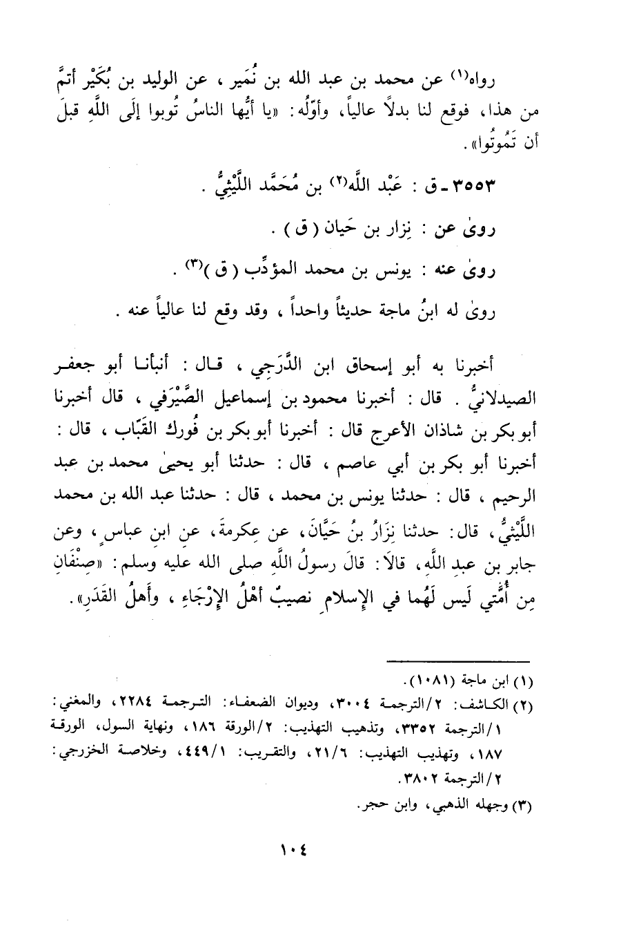 3553 - ق: عَبد اللَّهِ بن مُحَمَّد الليثي (2) .