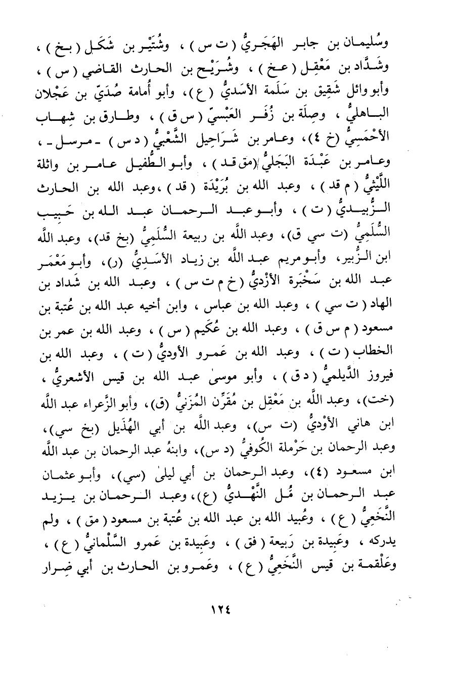 وسُلَيْمان بْن جابر الهجري (ت س) ، وشتير بْن شكل (بخ) ، وشداد بْن معقل (عخ) ، وشريح بْن الحارث القاضي (س) ، وأَبُو وائل شقيق بْن سلمة الأسدي (ع) ، وأَبُو أمامة صدي بْن عجلان الباهلي، وصلة بْن زفر العبسي (س ق) ، وطارق بْن شهاب الأحمسي (خ 4) ، وعامر بْن شراحيل الشعبي (د س) - مرسل، وعامر بْن عبدة البجلي (مق قد) ، وأَبُو الطفيل عامر بْن واثلة الليثي (م قد) ، وعَبْد اللَّهِ بْن بريدة (قد) ، وعَبْد اللَّهِ بْن الحارث الزبيدي (ت) ، وأبو عَبْد الرَّحْمَنِ عَبد اللَّهِ بْن حبيب السلمي (ت سي ق) ، وعَبْد اللَّهِ بْن ربيعة السلمي (بخ قد) ، وعَبْد اللَّهِ بْن الزبير، وأَبُو مريم عَبد اللَّهِ بْن زياد الأسدي (ر) ، وأَبُو معمر عَبد اللَّهِ بْن سخبرة الأزدي (خ م ت س) ، وعبد الله بن شداد بْن الهاد (ت سي) ، وعَبْد اللَّهِ بْن عَبَّاسٍ، وابن أخيه عَبد الله بْن عتبة بْن مسعود (م س ق) ، وعَبْد اللَّهِ بْن عكيم (س) ، وعَبْد اللَّهِ بْن عُمَر بْن الخطاب (ت) ، وعبد الله بْن عَمْرو الأَودِيّ (ت) ، وعَبْد اللَّهِ بْن فيروز الديلمي (د ق) ، وأبو موسى عَبد الله بن قيس الأشعري، (خت) ، وعَبْد اللَّهِ بْن معقل بْن مقرن المزني (ق) ، وأَبُو الزعراء عَبد اللَّهِ بْن هاني الأَودِيّ (ت س) ، وعَبْد الله بْن أَبي الهذيل (بخ سي) ، وعَبْد الرَّحْمَنِ بْن حرملة الكوفي (د س) ، وابنه عَبْد الرَّحْمَنِ بْن عَبد اللَّهِ بْن مسعود (4) ، وعَبْد الرَّحْمَنِ بْن أَبي ليلى (سي) ، وأَبُو عُثْمَان عَبْد الرَّحْمَنِ بن مل النهدي (ع) ، وعبد الرَّحْمَنِ بْن يَزِيدَ النَّخَعِيّ (ع) ، وعُبَيد الله بْن عَبد الله بْن عتبة بْن مسعود (مق) ، ولم يدركه، وعُبَيدة بْن ربيعة (فق) ، وعُبَيدة بْن عَمْرو السلماني (ع) ، وعلقمة بْن قيس النخعي (ع) ، وعَمْرو بْن الحارث بْن أَبي ضرار